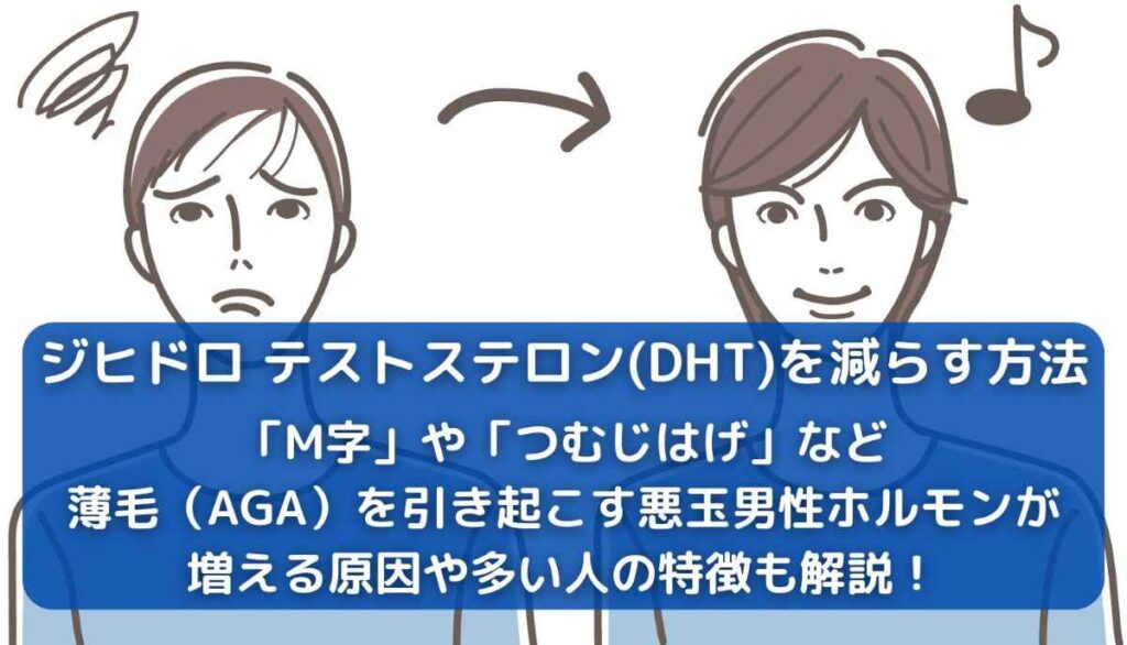 ジヒドロテストステロン(DHT)を減らす方法|M字やつむじはげなど薄毛(AGA)を引き起こす悪玉男性ホルモンが増える原因や多い人の特徴も解説